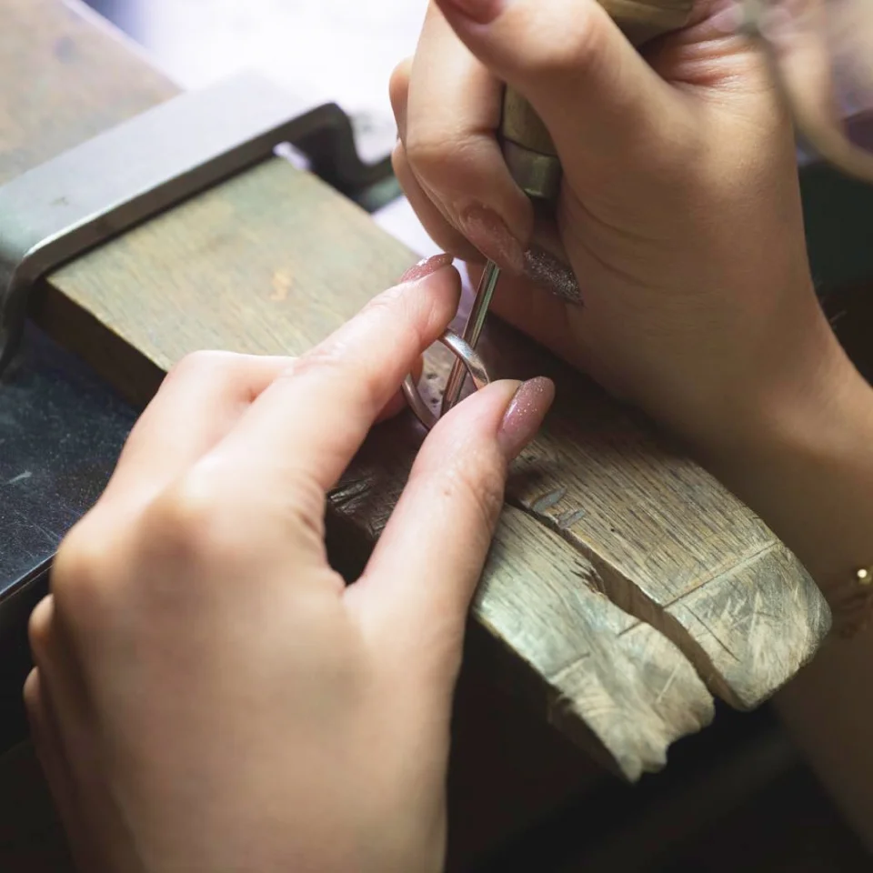 ご遺骨が弊社に届きましたら、指輪の制作を開始いたします。大切なペットのご遺骨を、職人がひとつひとつ心を込めて指輪にお仕立ていたします。